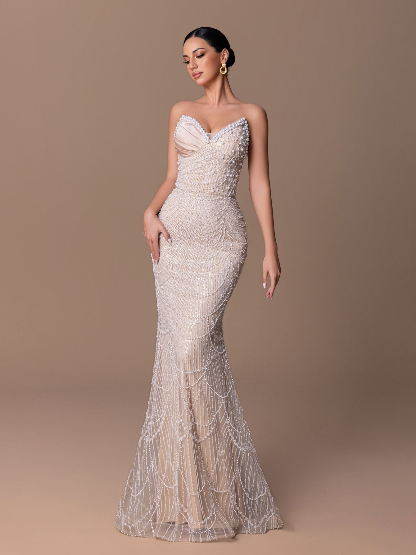 Strapless Mermaid Gown with Beaded Sequins & Sleek Flowing Lines