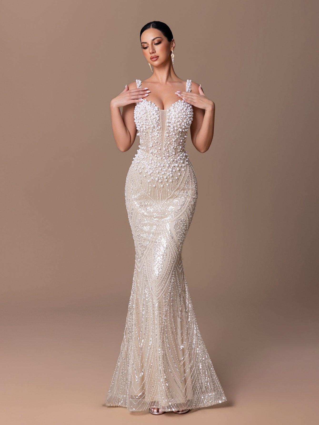 Sleeveless Mermaid Gown with Beaded Sequins & Crisscross Lace-Up Back