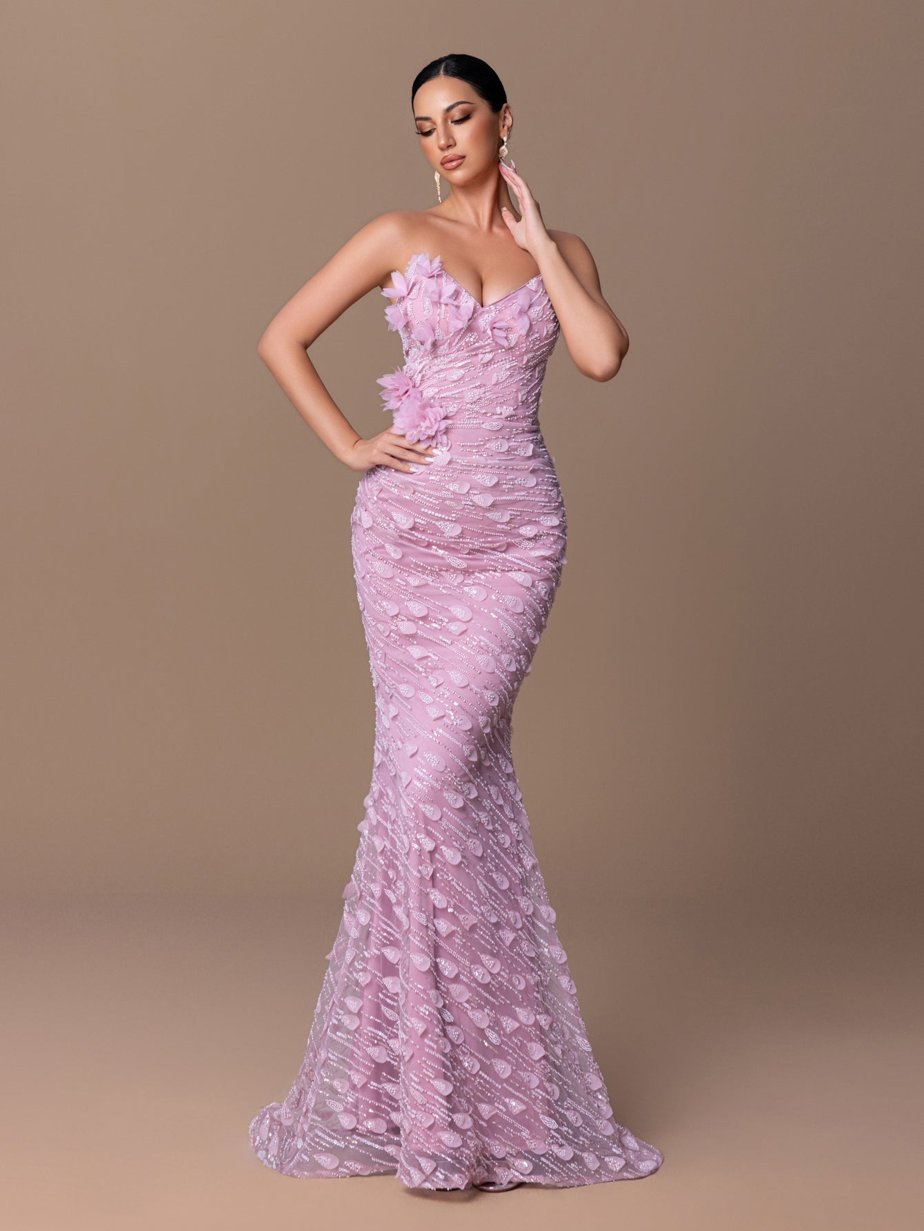 Strapless Beaded Sequin Mermaid Gown with 3D Floral Embroidery